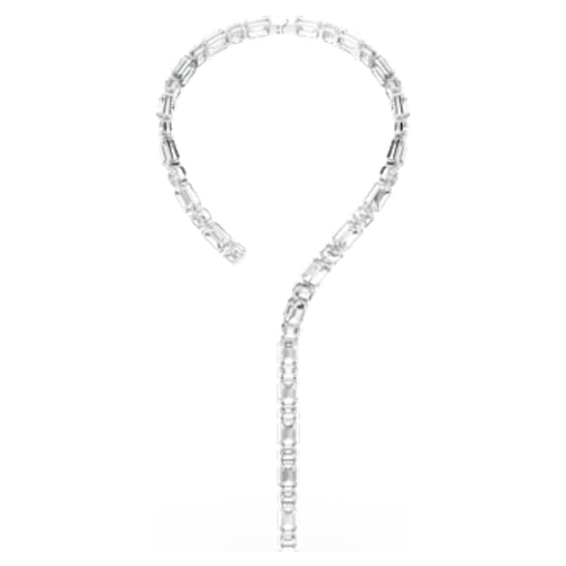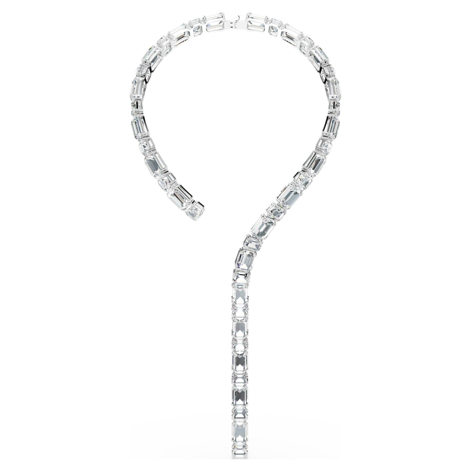 Laissez-vous séduire par la beauté pure des cristaux avec ce collier Millenia lumineux. Ce design en métal rhodié enveloppe le cou d’un cercle de cristaux incolores taille octogone, puis descend au centre avec une longue rangée éclatante. Portez ce collier au quotidien pour insuffler instantanément de la joie à toutes vos tenues.