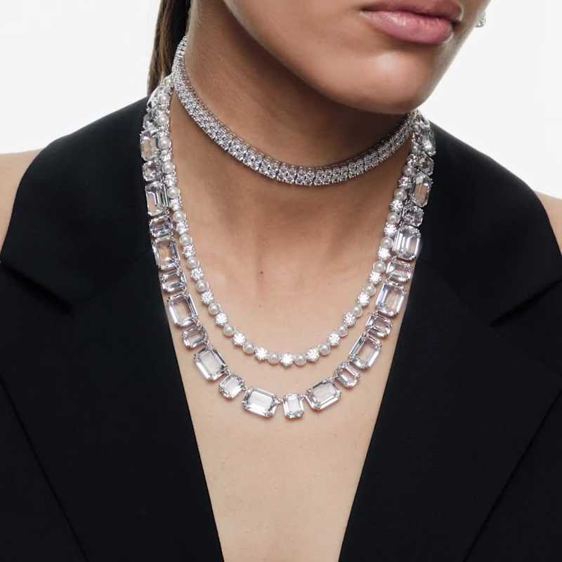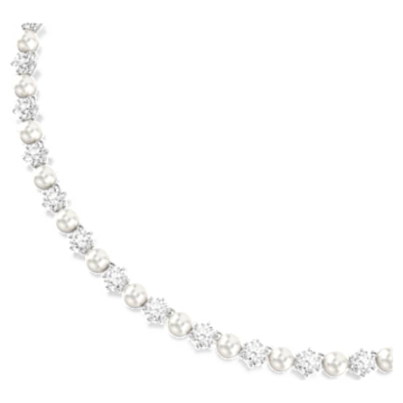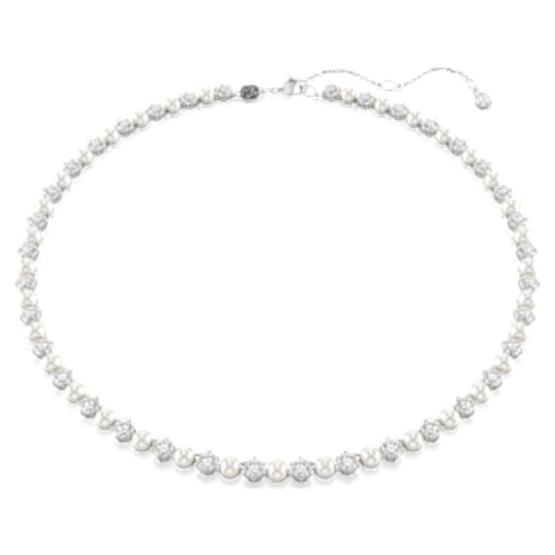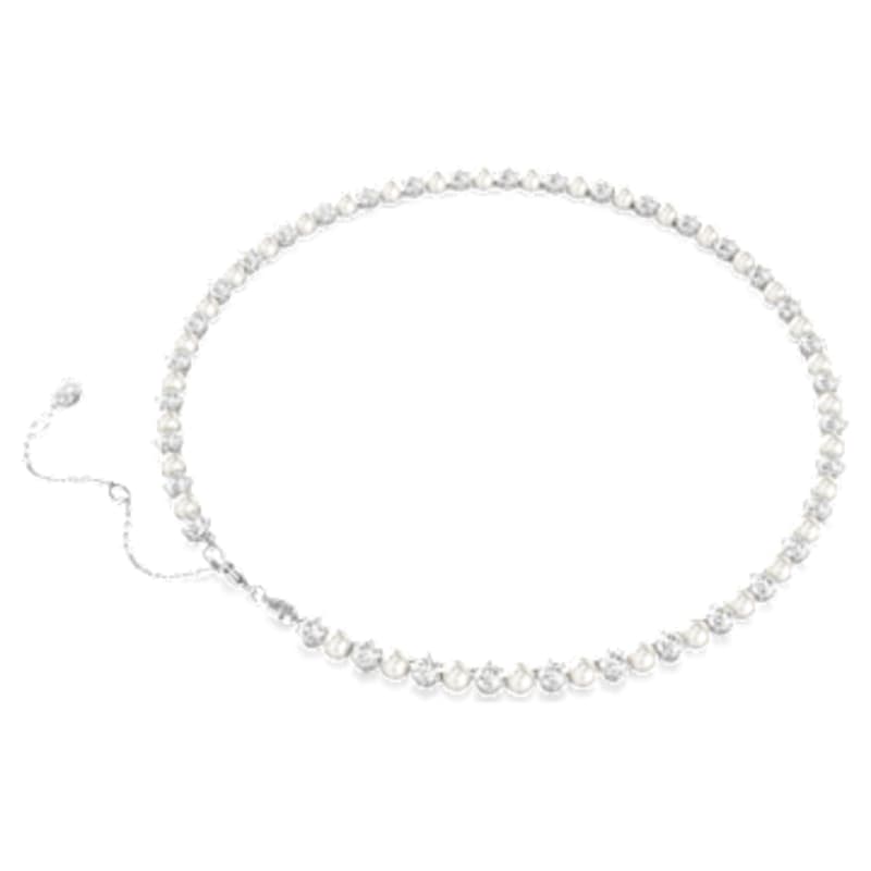 Pour une véritable expression de l’élégance, ce collier Matrix est un choix incontournable. Ce design en métal rhodié est orné en alternance de Swarovski Zirconia et de petites Crystal Pearls de Swarovski, créant une rangée harmonieuse et sophistiquée. Une extension supplémentaire vous permet d’ajuster la longueur selon vos préférences. Alliance idéale de style moderne et classique, ce bijou deviendra votre accessoire indispensable pour toutes les occasions qui appellent au raffinement.