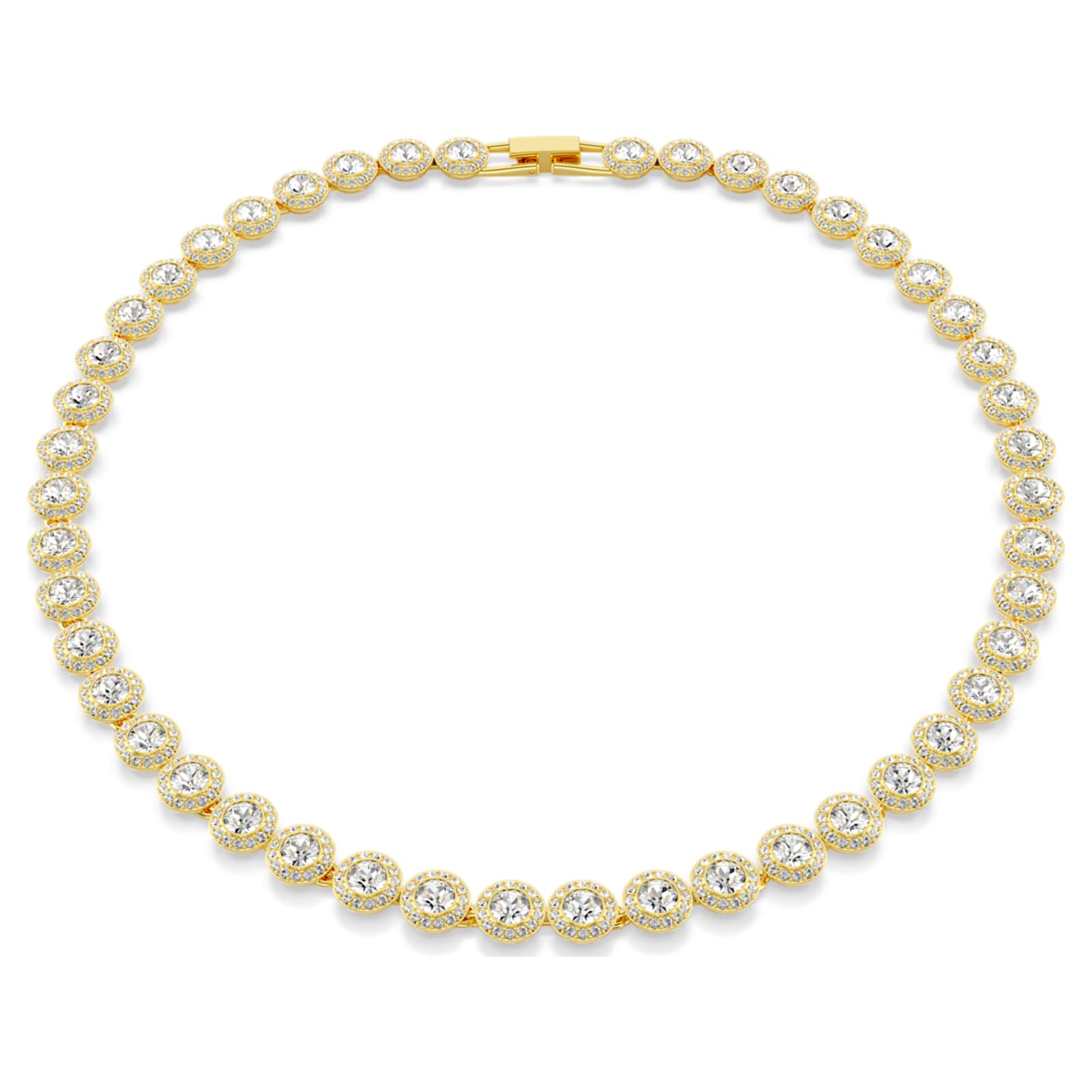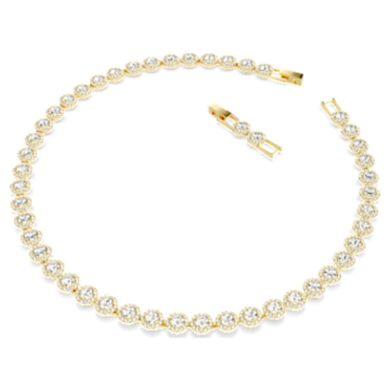 Sublimant une allure sophistiquée et intemporelle, ce collier Una éclatant arbore l’une des silhouettes les plus appréciées de Swarovski. Ce design au placage de ton or est orné d’un ravissant pavé de grands cristaux taille ronde, chacun rehaussé d’un halo de pavé incolore. Le fermoir à rabat offre une fermeture aisée, tandis que l’extension supplémentaire vous permet d’ajuster le bijou pour plus de confort et de polyvalence. Une façon idéale d’accentuer le glamour de vos looks du matin au soir.