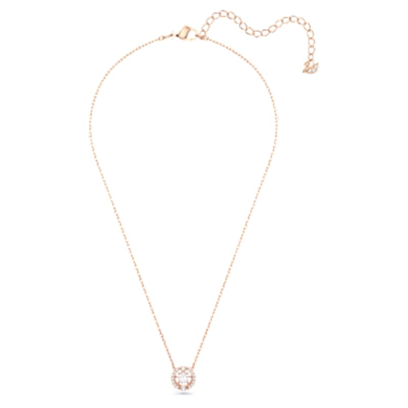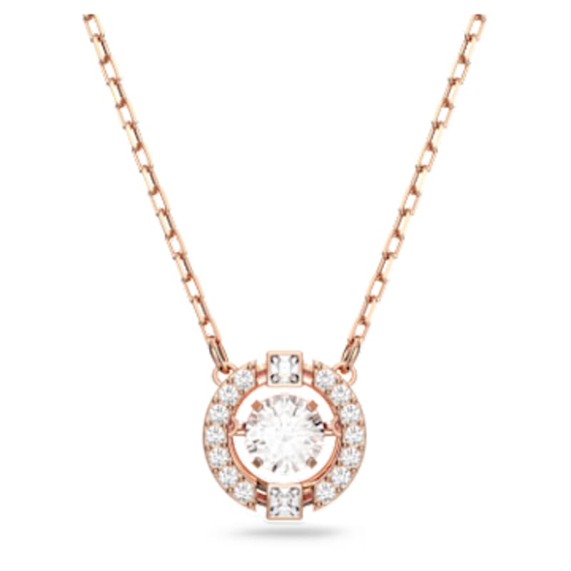 Affichant le nouveau concept de design du « cristal dansant », ce collier en métal doré rose arbore une pierre ronde qui flotte à l’intérieur d’une cage en 3D ornée d’un pavé de cristaux. Complément essentiel de toute boîte à bijoux, il offrira à votre style quotidien un éclat ludique.