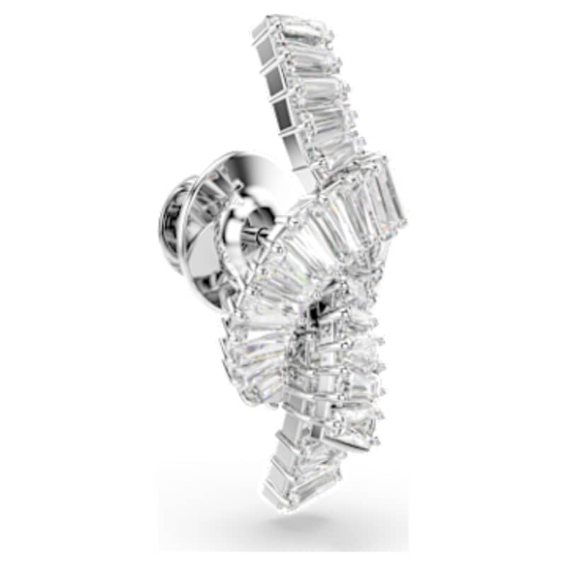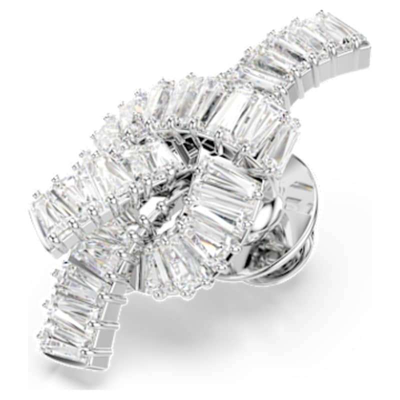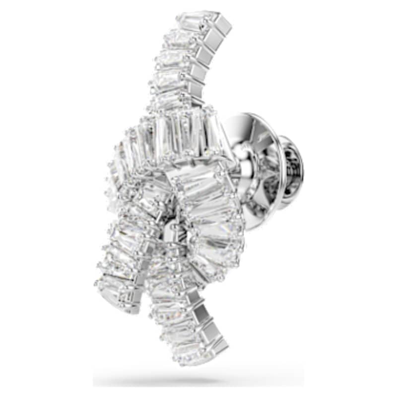 Apportez une touche de lumière à toutes vos tenues avec cette épingle captivante. Le motif en métal rhodié, inspiré d’un ruban, affiche un ornement noué de Swarovski Zirconia taille baguette. Superbe portée seule, elle sera également du plus bel effet accompagnée des pièces assorties de la même famille de bijoux.
