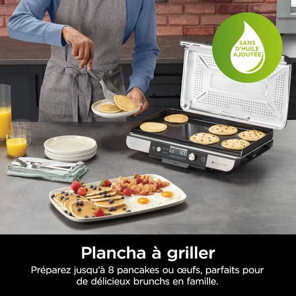 Cuisson avec couvercle ouvert, fermé ou enlevé : Idéal pour faire fondre du fromage, remuer ou cuisiner à la teppanyaki.