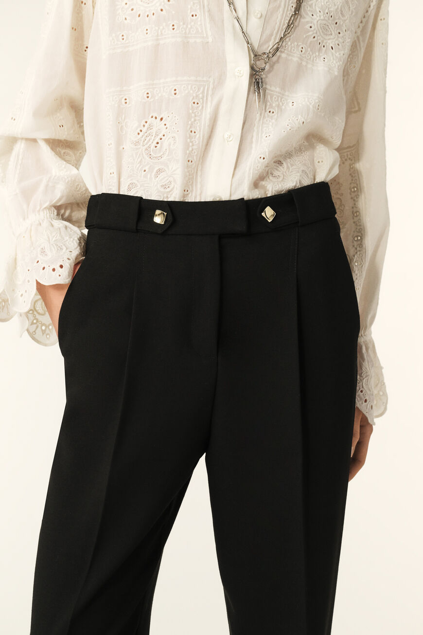 – Détails de boutons dorés carrés sur les passants de la ceinture