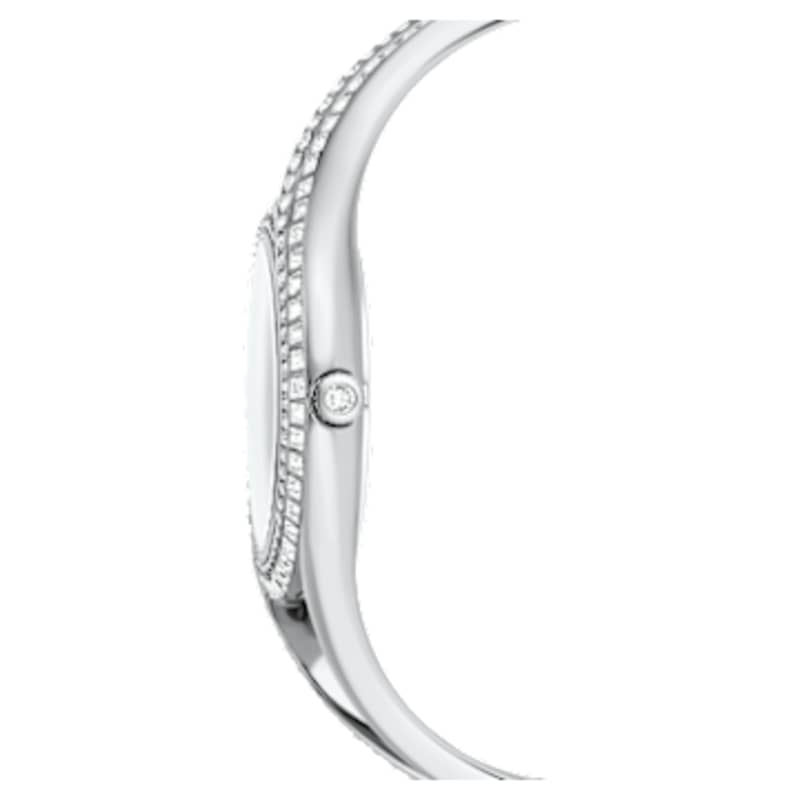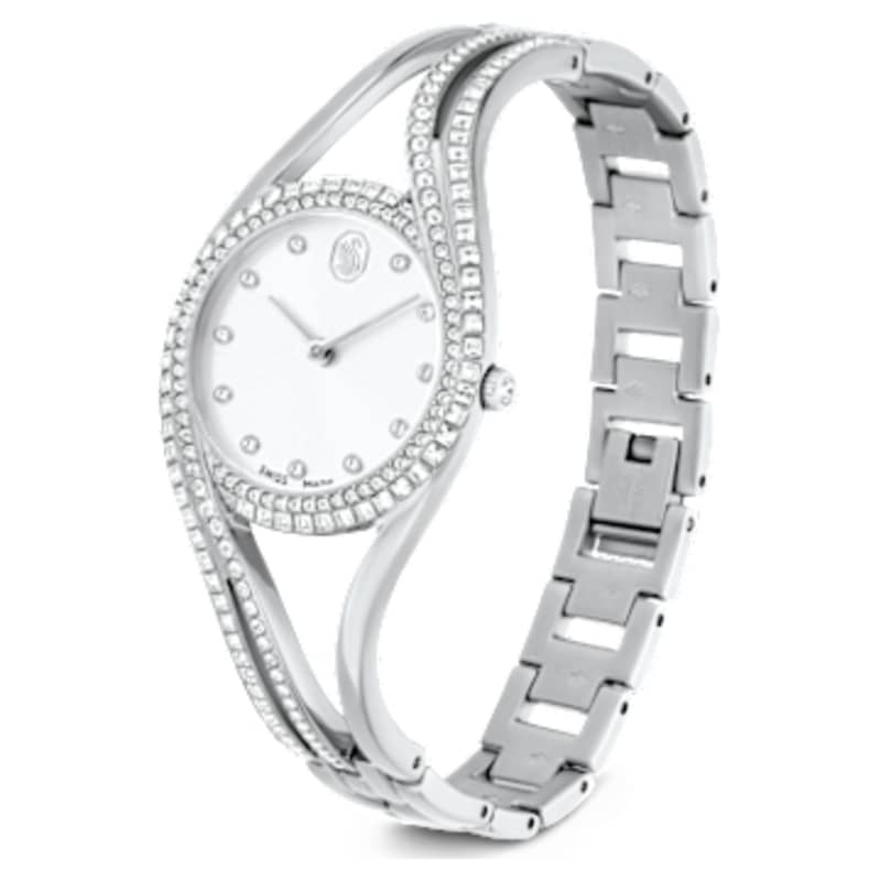 Distinguée par ses courbes élégantes et son raffinement, cette montre Hyperbola bangle brouille la frontière entre montre et bijou. Son boîtier de 28 mm en acier inoxydable présente un ensemble lunette et bracelet sertis de 176 cristaux incolores aux tailles princesse et ronde. Son cadran soleillé affiche également 11 index en cristaux, ainsi qu’un logo cygne à midi. Pour une belle touche finale, cette montre Swiss Made arbore un unique cristal serti dans la couronne, tout en offrant une étanchéité jusqu’à 50 m. Une montre à l’allure moderne qui allie talent, lumière et savoir-faire brillant.