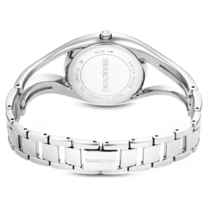 Distinguée par ses courbes élégantes et son raffinement, cette montre Hyperbola bangle brouille la frontière entre montre et bijou. Son boîtier de 28 mm en acier inoxydable présente un ensemble lunette et bracelet sertis de 176 cristaux incolores et bleus aux tailles princesse et ronde. Son cadran soleillé affiche également 11 index en cristaux, ainsi qu’un logo cygne à midi. Pour une belle touche finale, cette montre Swiss Made arbore un unique cristal serti dans la couronne, tout en offrant une étanchéité jusqu’à 50 m. Une montre à l’allure moderne qui allie talent, lumière et savoir-faire brillant.