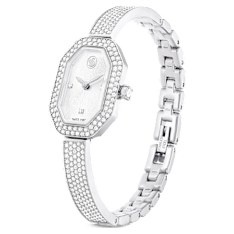 Affichant l’emblématique forme octogonale de Swarovski, cette unique montre bracelet-jonc Dextera incarne le glamour ultime. Son boîtier en acier inoxydable de 20 mm x 30,5 mm est orné d’un pavé de 92 cristaux sur la lunette. Le cadre idéal pour son étonnant cadran soleillé sur lequel figurent un logo cygne à midi et trois index cristallisés. Outre l’unique cristal étincelant serti dans la couronne, la montre est aussi rehaussée de 194 cristaux sertis sur le bracelet réglable, pour une élégance et une brillance exceptionnelle à toute heure. Cette montre Swiss Made, étanche à 30 m, associe joyeuse extravagance au savoir-faire emblématique de Swarovski.