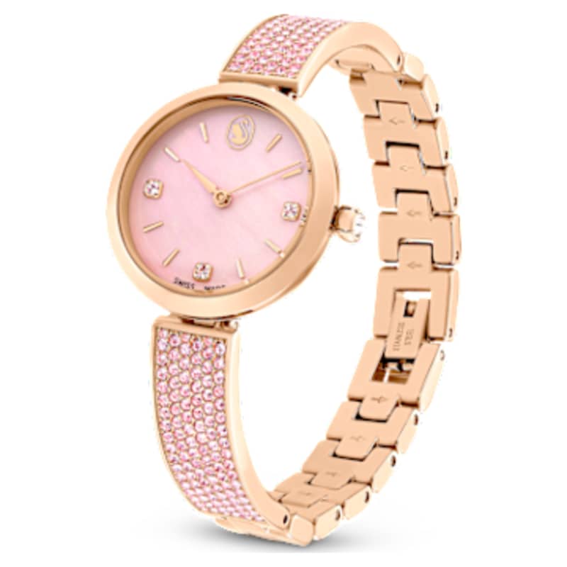 Cette montre Illumina exquise rayonne de passion. Son boîtier de 28 mm en acier inoxydable est habillé d’un placage de ton or rosé et comprend une couronne sertie d’un cristal. Pensé pour inspirer élégance et simplicité, son cadran en nacre rose inclut des cristaux roses sur trois des index accompagnés d’un logo cygne à midi. Ce design étincelant est complété par un bracelet de ton or réglable orné de 210 cristaux roses. Étanche à 50 m, cette montre Swiss made fera un cadeau parfait pour un proche ou pour vous-même.