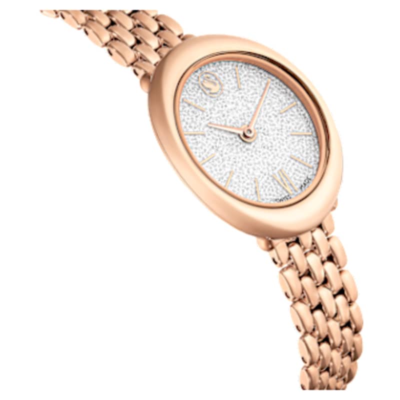 La montre Imber offre une approche moderne de l’horlogerie grâce à son cadran scintillant et à sa forme elliptique intemporelle. Cette version de 24 x 26,3 mm en acier inoxydable est dotée d’une finition de ton or rosé et affiche environ 1 000 cristaux incolores sur son cadran Crystalline. Parmi les index effilés, un unique chiffre romain est affiché à 6 heures, tandis que le cygne iconique de Swarovski est placé à 12 heures. Cette montre Swiss Made se porte sur un bracelet en métal poli et offre une étanchéité jusqu’à 50 m. Adoptez-la au quotidien pour un style sophistiqué aussi bien de jour que de nuit.