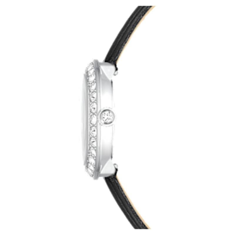 S’inspirant de la forme emblématique des bijoux Matrix Tennis de Swarovski, cette montre séduit par son élégance et ses cristaux. Ce design de 30 mm en acier inoxydable est sublimé par un pavé de 30 cristaux incolores sur la lunette, tandis que le cadran soleillé est rehaussé de cristaux en guise d’index et arbore le logo cygne à midi. Le bracelet en cuir noir, doté d’une finition satinée et d’un système d’attache rapide, offre un confort optimal sur le poignet. Swiss made, cette montre est étanche jusqu’à 50 mètres et ornée d’un unique cristal sur la couronne. Associez-la aux bijoux de la famille Matrix Tennis pour un look harmonieux.