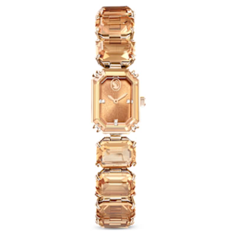 Inspirée de la famille Millenia, cette montre-bracelet attrayante rehaussera votre look de tous les jours. Réalisée avec expertise, elle arbore une rangée de cristaux ambre taille octogone, une pièce centrale en verre saphir et une finition dorée champagne. Étanche jusqu’à 50 m. Un choix inspirant à porter seul ou en superposition.