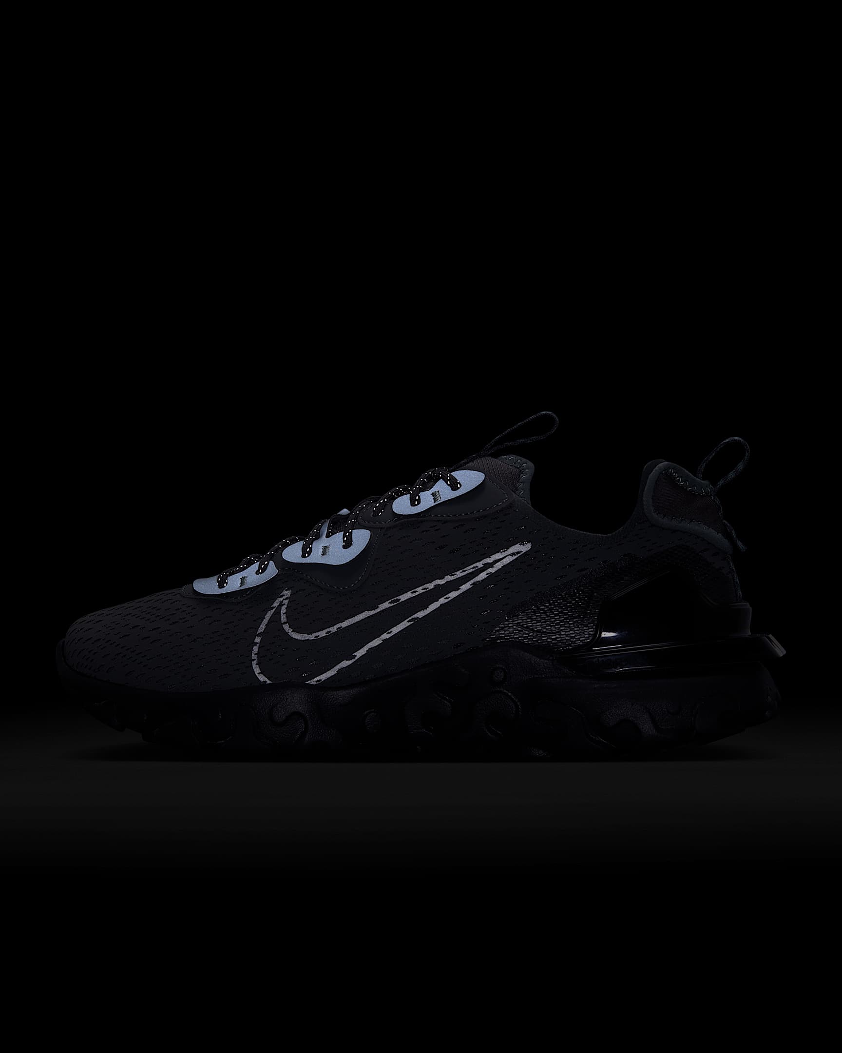Explore le monde qui t’entoure avec la Nike React Vision. Un style unique et un confort surréaliste. Des textures superposées et des formes originales pour un look inspiré des rêves. La mousse Nike React et la languette matelassée apportent l’amorti rêvé pour toutes tes aventures, réelles ou imaginaires.