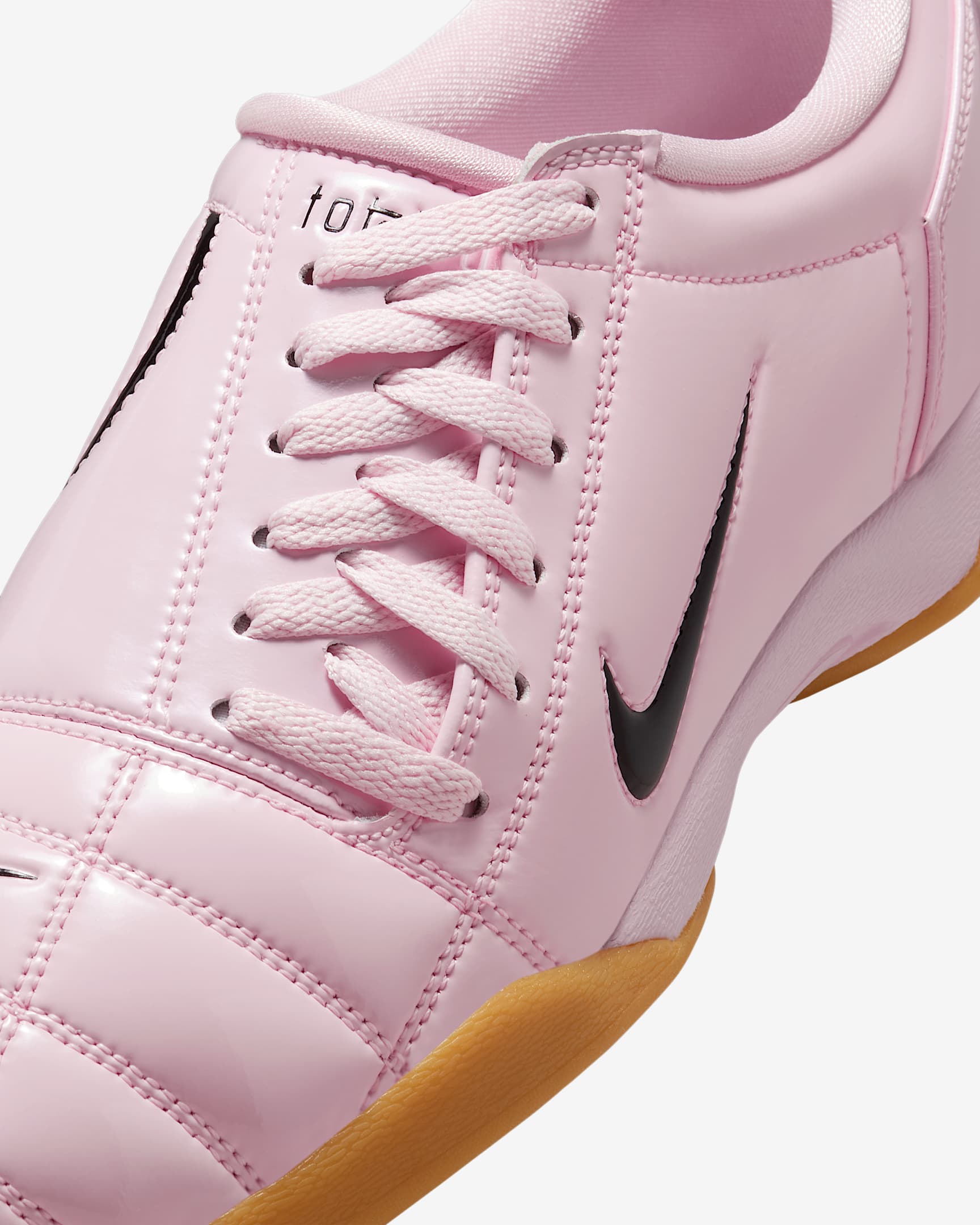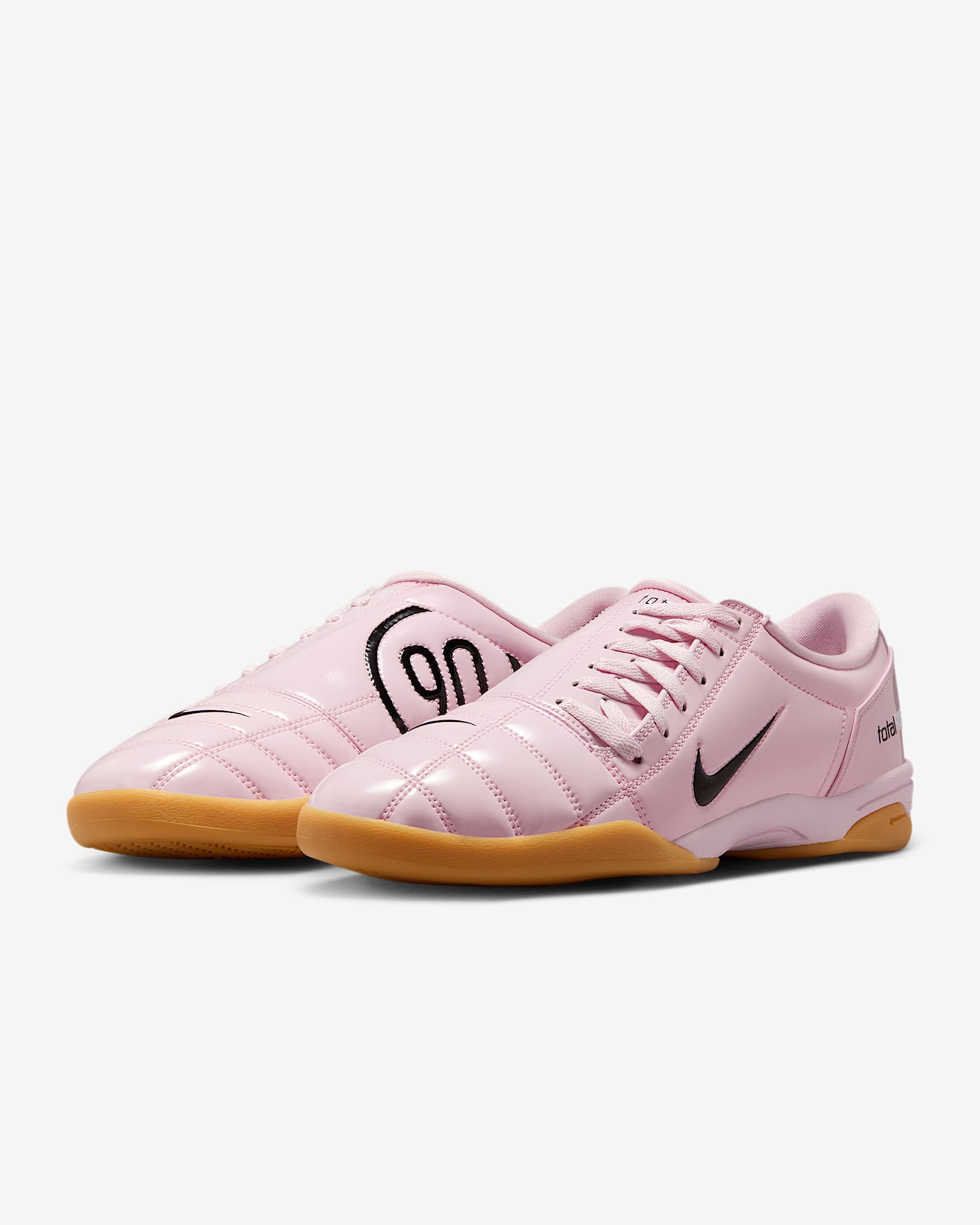 La Total 90 est de retour, dans un look nostalgique des années 2000. Cette version conserve l’empeigne matelassée et le laçage asymétrique de la chaussure de foot d’origine. Ce qui change : on a remplacé la semelle à crampons par une semelle plate en caoutchouc, faite pour le quotidien.