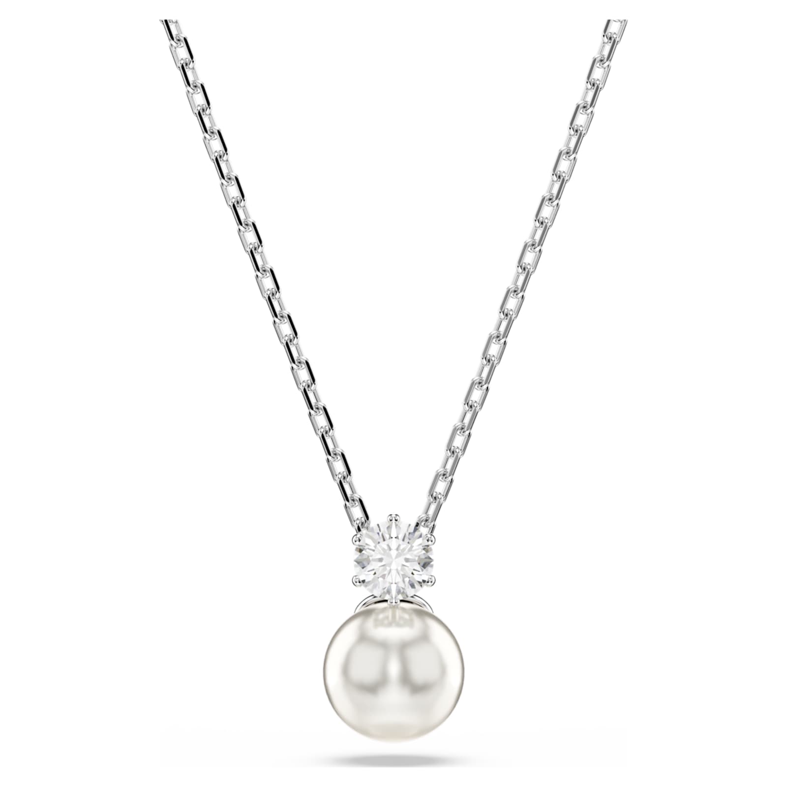 Véritablement emblématique, ce magnifique set Matrix inclut un pendentif et des boucles d’oreilles étincelants d’éclat. Le pendentif est suspendu à une chaîne en métal rhodié et présente une Crystal Pearl de Swarovski blanche ainsi qu’un Swarovski Zirconia taille ronde. La même association splendide est présente sur chaque clou d’oreille. Portez-les par exemple avec un t-shirt et un jean pour un look naturellement captivant.