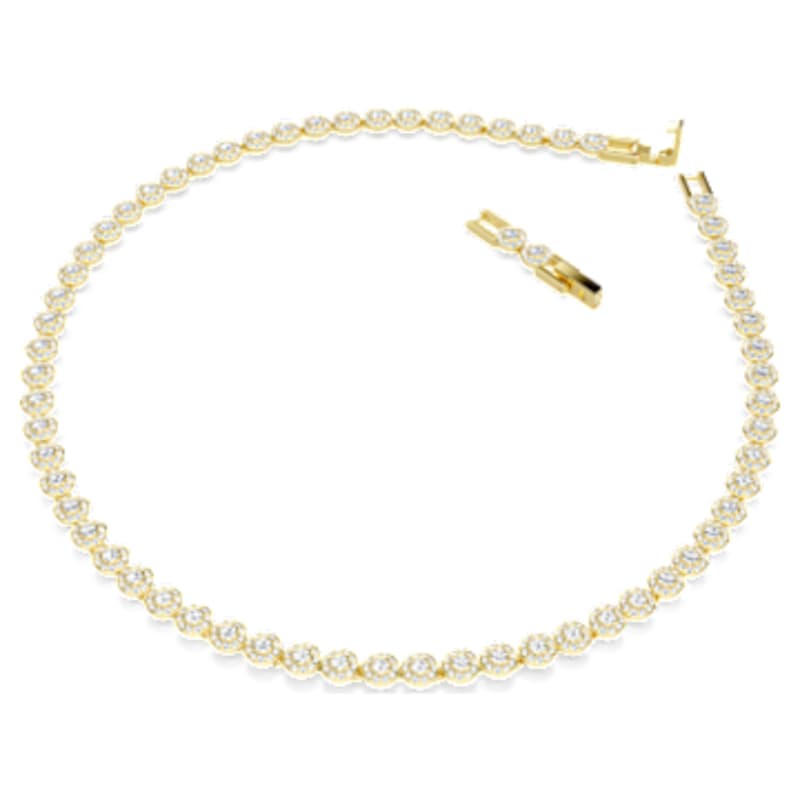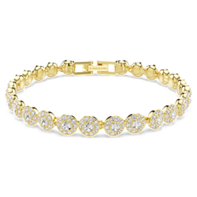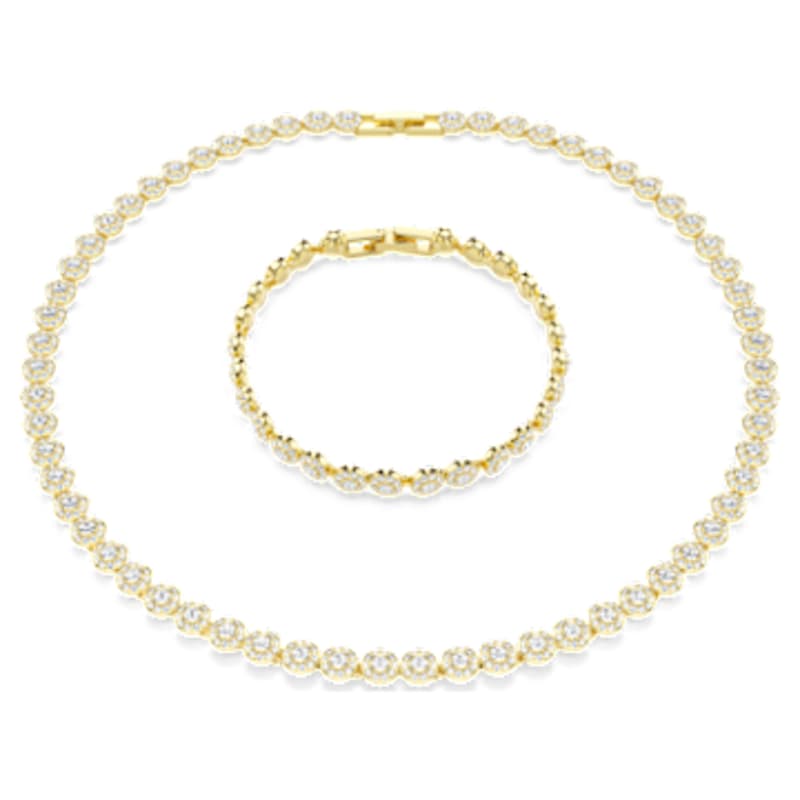 Harmonisant le luxe de votre style, cette parure au placage de ton or est conçue pour briller. Chaque pièce est ornée d’un ravissant pavé de cristaux taille ronde, chacun rehaussé d’un halo de pavé incolore. Cela inclut les motifs délicats du collier et du bracelet. Le fermoir à rabat permet une fermeture aisée, tandis que les extensions supplémentaires vous permettent d’ajuster les bijoux pour plus de confort et de polyvalence. Portez ces pièces ensemble pour un look résolument glamour.