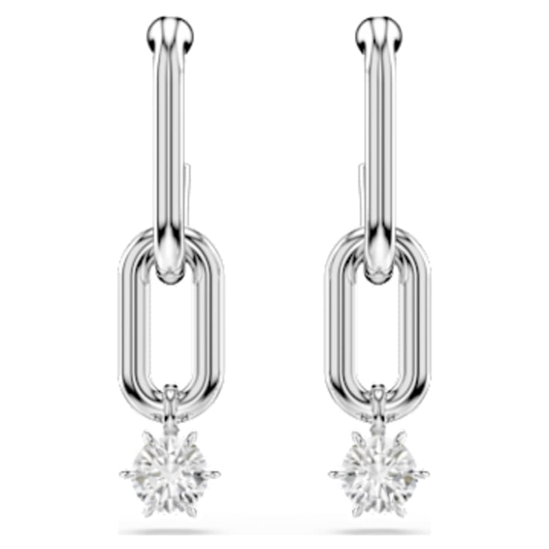 Ces boucles d’oreilles malicieuses sont le choix idéal pour un style inattendu. Chaque pièce comprend deux maillons entrelacés en métal rhodié, avec un Swarovski Zirconia serti griffes délicatement suspendu en dessous. Un look métallique et élégant pour toutes les occasions, sublimé par l’éclat unique de Swarovski.
