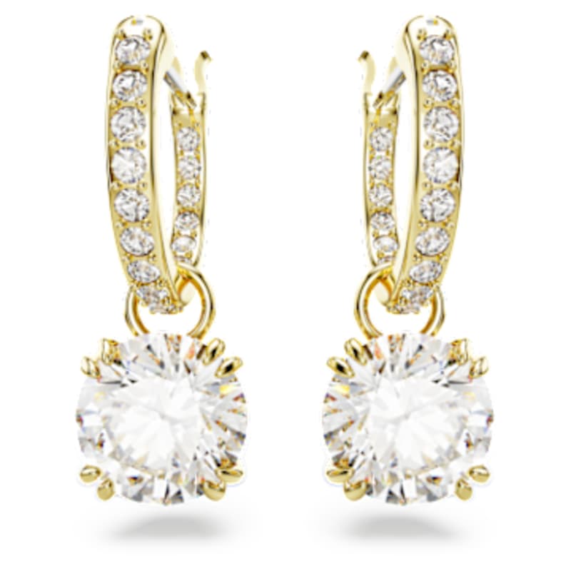 Vous ne vous lasserez jamais de porter ces pendants d’oreilles fascinants de la famille Stilla. À la fois spectaculaires et raffinées, les pierres centrales éblouissantes sont rehaussées d’un pavage sur la galerie et d’anneaux sertis sur un placage de ton or. Portez-les avec vos cheveux relevés pour leur permettre de briller.