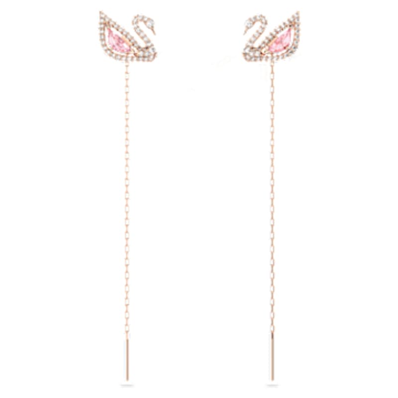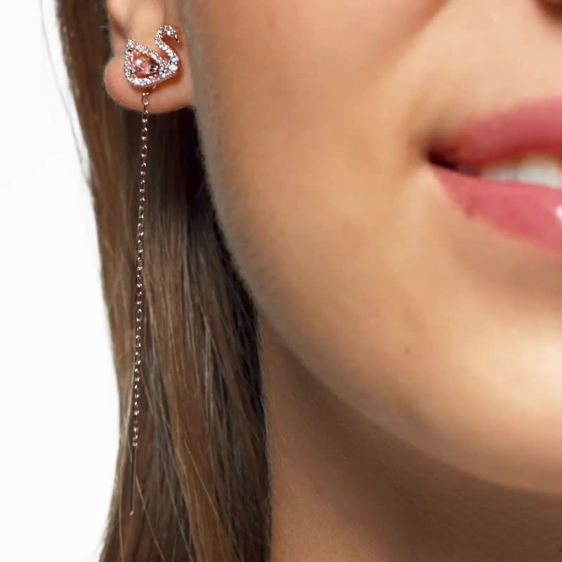 Profitez de multiples looks avec cette paire scintillante de longues boucles d’oreilles polyvalentes. Le motif de cygne iconique étincelle avec un corps confectionné dans un cristal entièrement facetté de couleur rose subtil décontractée et des lignes en cristal incolore pur serti pavé. Portez-les en simples clous, ou attachez une chaîne ou les deux. Confectionnées dans un délicat métal doré rose, les chaînes confèrent un style plus magistral. Un design gracieux qui offrira assurément un style décontracté et romantique à votre collection de tous les jours. Il existe aussi des produits assortis.