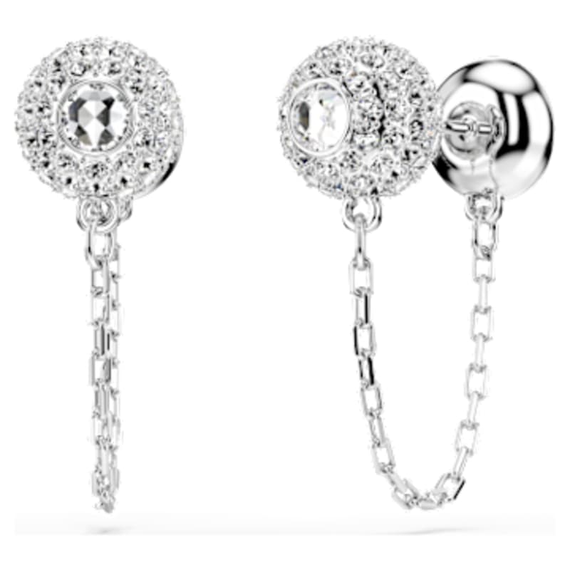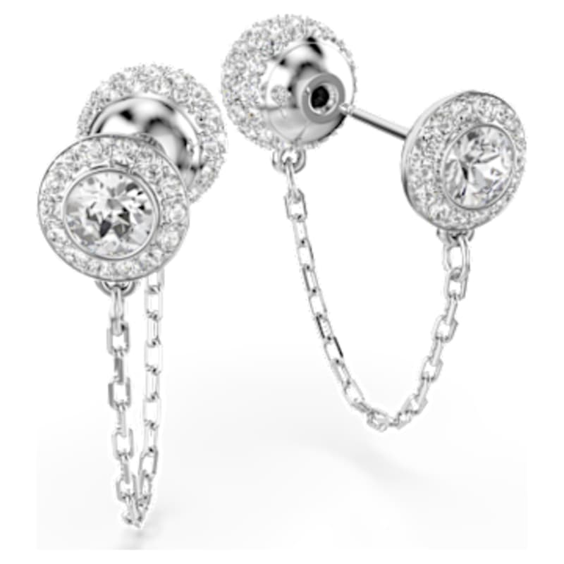 Irradiez d’émerveillement avec ces boucles d’oreilles Swarovski scintillantes. Chaque pièce en métal rhodié est ornée d’une longue chaîne reliée à un motif double face, présentant un agencement unique de cristaux ronds de chaque côté. Le motif suspendu peut aussi être attaché à l’arrière du clou d’oreille pour offrir une option de port polyvalente. Associez-les à d’autres pièces Una Angelic pour un éclat sublimé.