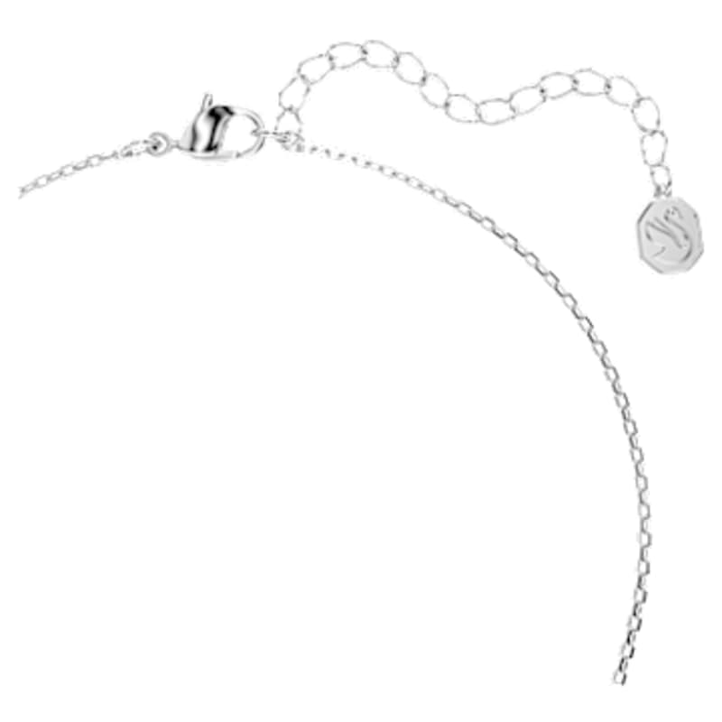 Ce pendentif romantique en forme de V attire tous les regards grâce à son cristal rose central serti dans du métal rhodié. Un pavé scintillant vient ajouter une touche supplémentaire de lumière, tandis que sa chaîne délicate brille d’élégance et de pureté. Portez-le avec les boucles d’oreilles assorties pour un look coordonné.