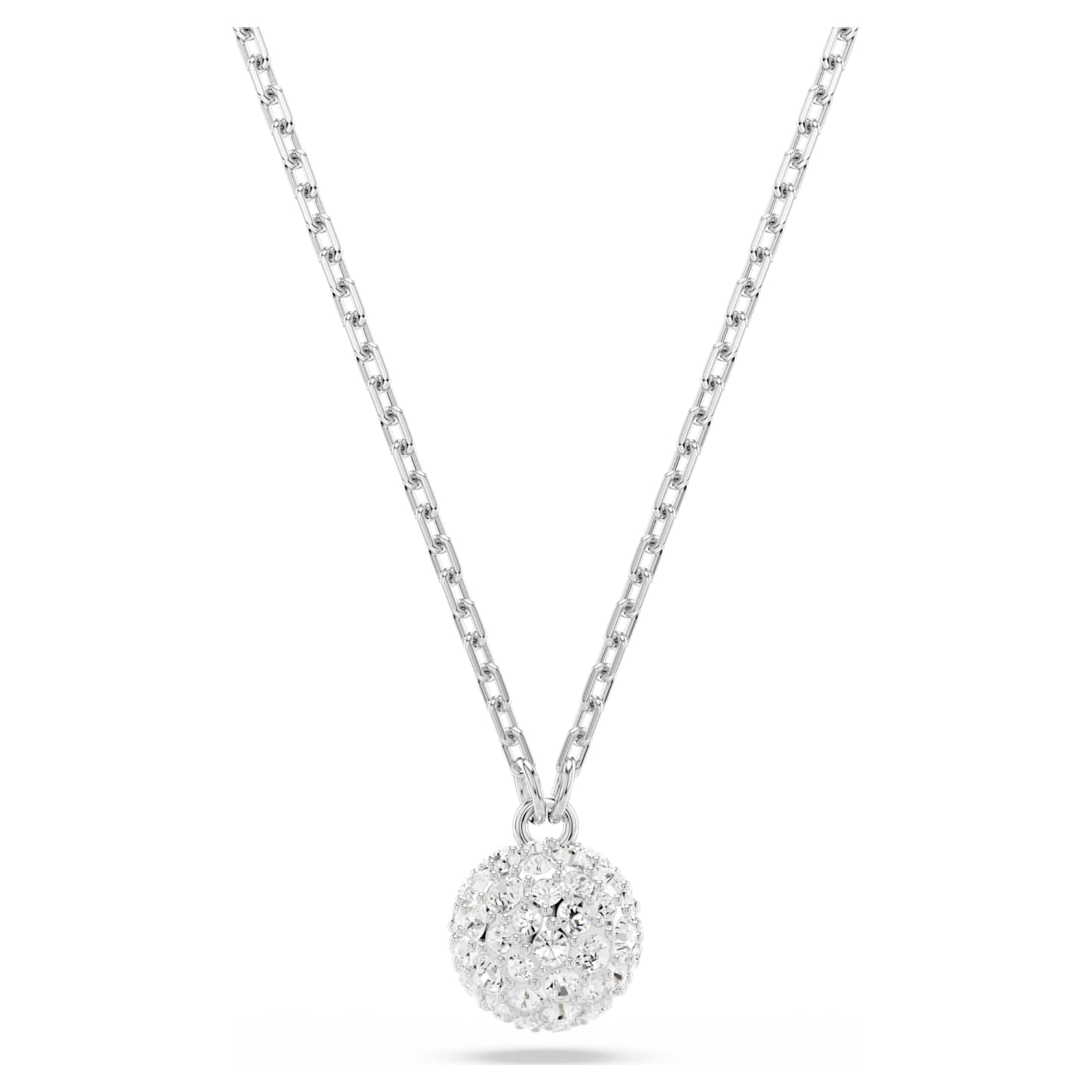 Scintillant comme une planète lointaine dans la nuit étoilée, ce pendentif en métal rhodié dévoile une sphère en 3D ornée d’un pavé de cristaux incolores. Suspendu à une chaîne élégante avec un fermoir mousqueton, cette pièce étincelante peut à l’envi être portée seule ou accompagnée de pièces Dextera pour un look aussi brillant qu’harmonieux.