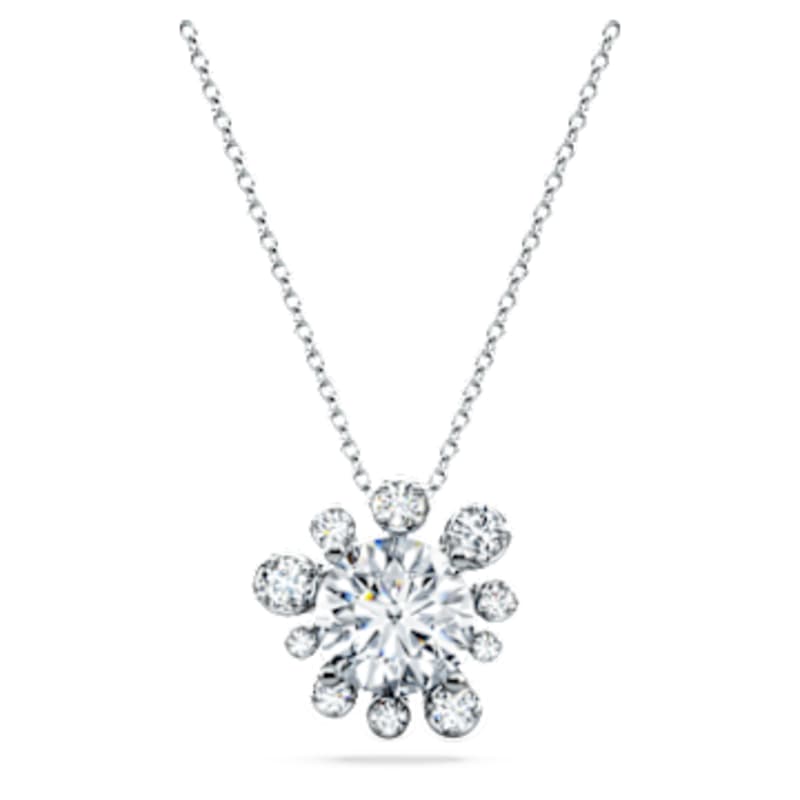 Éclair de lumière spectaculaire, ce pendentif rayonnant est un merveilleux témoignage du savoir-faire Swarovski. Sur sa délicate chaîne à fermoir mousqueton, son design en or blanc 18K présente en son centre un diamant de synthèse, facetté d’une main experte pour un maximum de brillance. Dix diamants de synthèse ronds, de tailles variées, l’entourent, chacun resplendissant de leur beauté unique. Une pièce exquise à associer à l’envie avec des boucles d’oreilles assorties. Ce bijou fait partie de la collection Galaxy imaginée par Giovanna Engelbert. Les diamants de synthèse de cette collection sont notés et certifiés par l’IGI (International Gemological Institute) selon la règle des 4Cs.