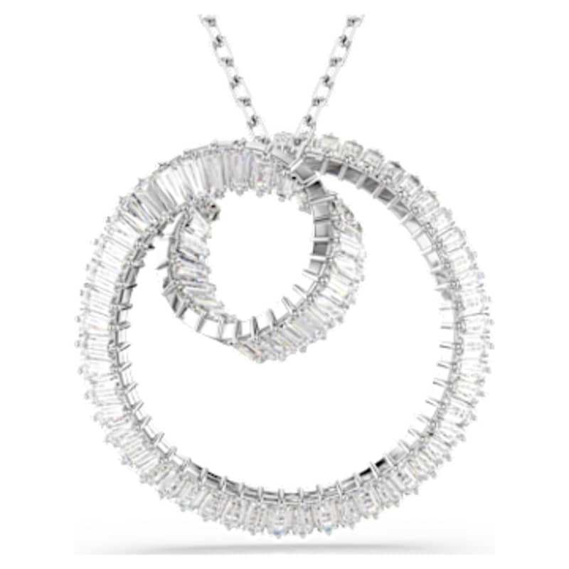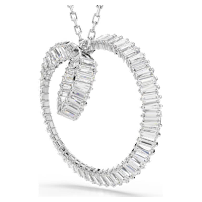Dans un tourbillon de lumière spectaculaire, ce pendentif Matrix associe du métal rhodié classique à des Swarovski Zirconia lumineux. Suspendu à une longue chaîne, son motif central offre une vision tourbillonnante d’un ruban élégant, créé avec une rangée complète de tailles baguette serties griffes. Ce pendentif permet d’ajouter naturellement de l’éclat à toutes vos tenues et s’associera merveilleusement avec une paire de boucles d’oreilles assortie de la même famille Matrix.
