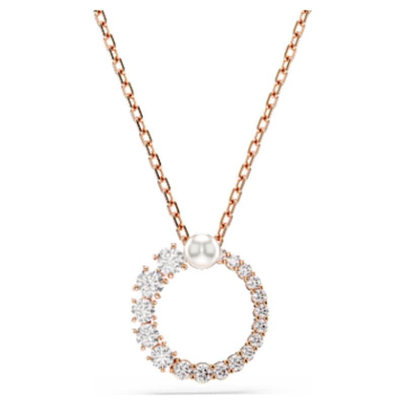 Avec sa silhouette raffinée et ses détails contemporains, ce pendentif Matrix élégant attirera tous les regards. Suspendu à une chaîne délicate, ce bijou de ton or rosé présente un anneau en Swarovski Zirconia incolores, allant du plus petit au plus grand, et se termine par une Crystal Pearl de Swarovski blanche en son centre. Associez-le à une tenue monochrome pour un effet maximal.