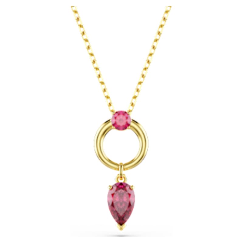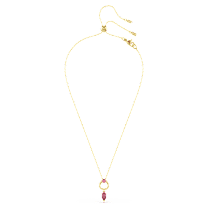 Élégance quotidienne, teintes profondes et éclat chromatique se rencontrent avec ce pendentif Mesmera, pensé pour capter tous les regards. Son motif scintillant présente un Swarovski Zirconia taille poire rouge, fixé à un anneau luxueux au placage de ton or. Un Swarovski Zirconia taille ronde supplémentaire est placé au centre, tandis qu’un mécanisme coulissant sur la chaîne permet d’ajuster facilement le pendentif à la longueur souhaitée.