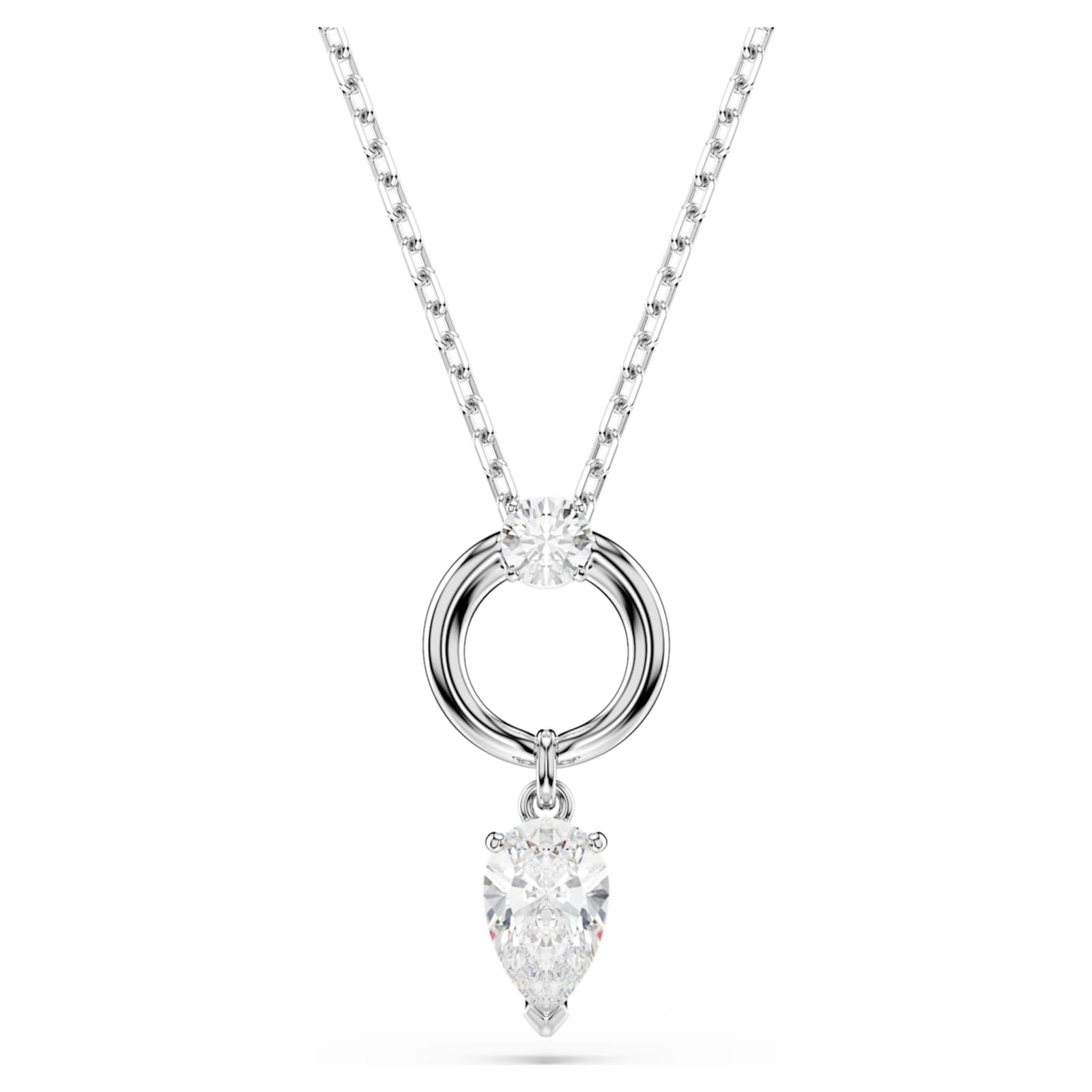 Ce pendentif Mesmera allie éclat et raffinement pour créer un bijou de tous les jours attirant le regard. Le motif scintillant présente un Swarovski Zirconia taille poire, attaché à un anneau luxueux en métal rhodié. Un Swarovski Zirconia supplémentaire taille ronde est placé au centre, tandis qu’un mécanisme coulissant sur la chaîne permet d’ajuster facilement le pendentif à la longueur souhaitée. Portez-le avec les boucles d’oreilles assorties pour créer votre propre set exceptionnel.