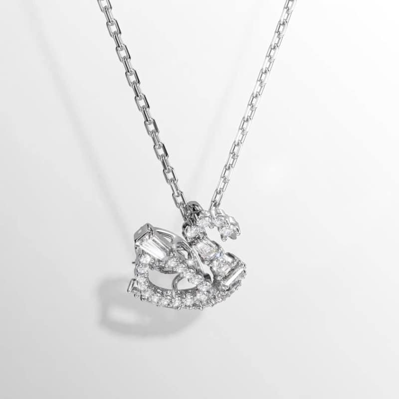 Ce pendentif évoque le mouvement gracieux du cygne iconique de Swarovski. Suspendu à une chaîne en métal rhodié, le motif central révèle une silhouette élégante, ornée de Swarovski Zirconia et d’une dancing stone incolore dans le corps du cygne. Ce détail éclatant crée un mouvement de lumière perpétuel, et fera briller votre style à chaque instant.