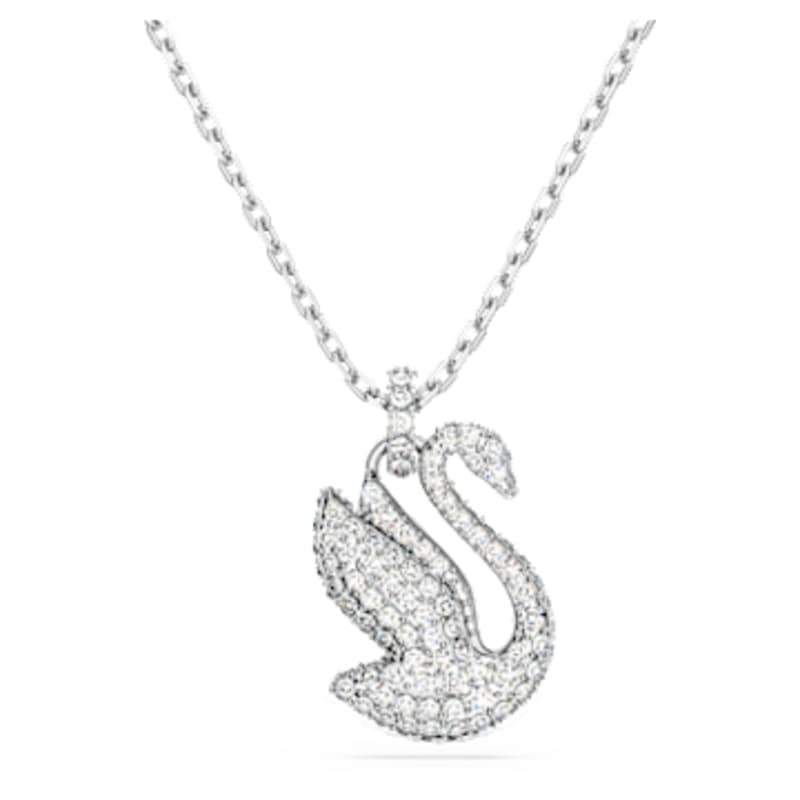 Célébrez la grâce et de la noblesse du cygne emblématique de Swarovski avec ce pendentif aux lignes élégantes et délicates. Un cygne aux ailes déployées, prêt à prendre son envol, ornementé d’un pavage de cristaux incolores scintillants montés sur du métal rhodié, qui évoque poésie et liberté.