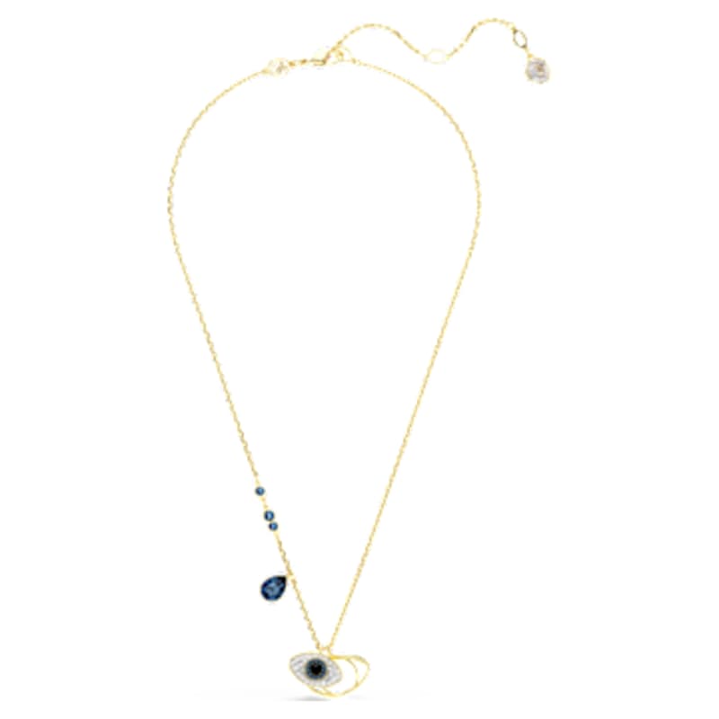Ce pendentif mystique Symbolica est pensé pour offrir à la fois protection et style. Il présente un motif de mauvais œil bombé aux cristaux pavés bleu, noir et incolore ainsi qu’un second motif au placage de ton or. Sa chaîne perlée est ornée de cristaux bleu foncé aux tailles ronde et poire. Adoptez cette pièce étincelante pour aborder chaque jour avec confiance.