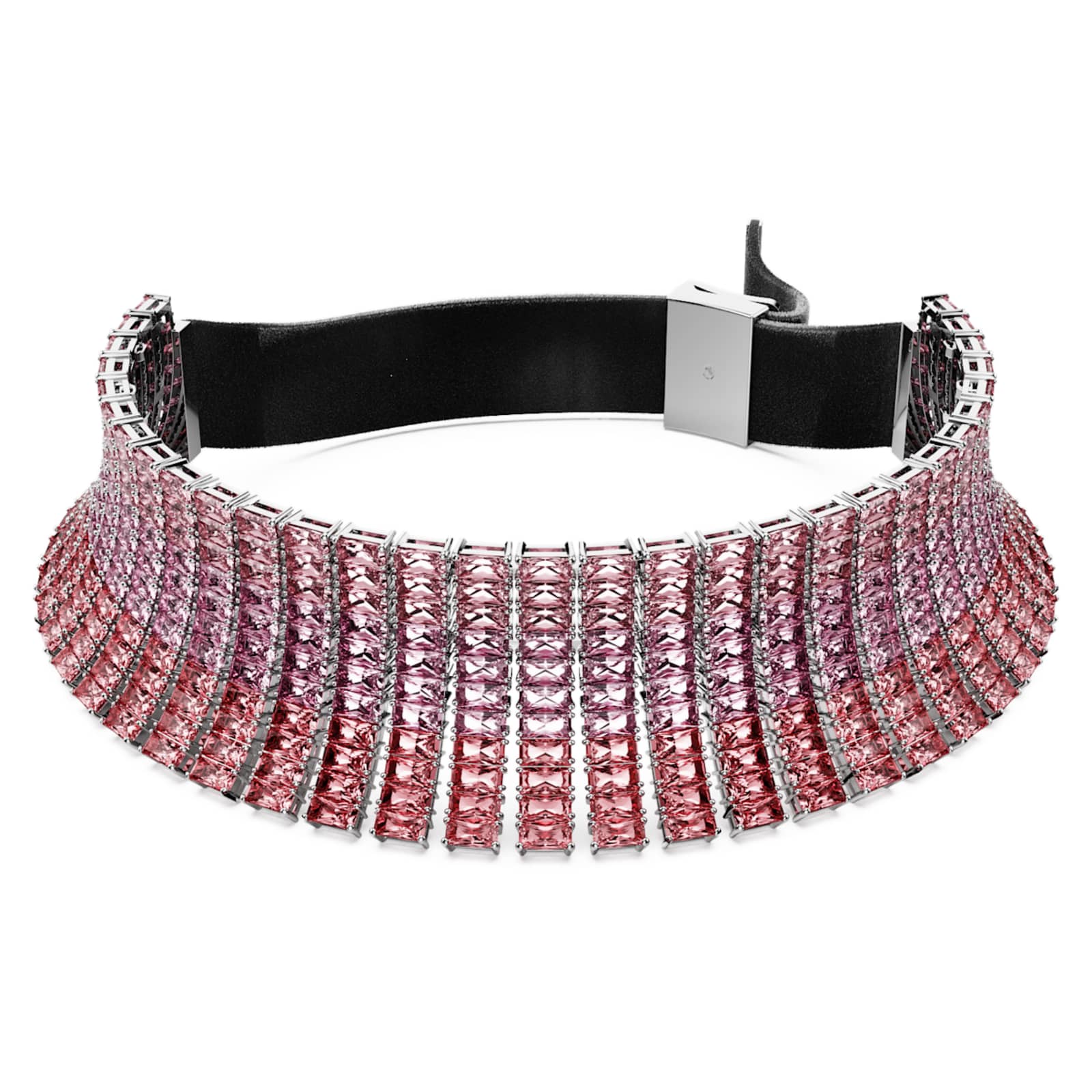 Lumineux, coloré et véritablement inoubliable. Ce choker d’exception de la famille Matrix est né pour une expression personnelle radieuse. Ce design en métal rhodié présente une forme concave qui enveloppe le cou de rangées de Swarovski Zirconia taille baguette dans de multiples tons de rose. Un parfait exemple du savoir-faire expert de Swarovski qui habillera votre look d’une joie extravagante.