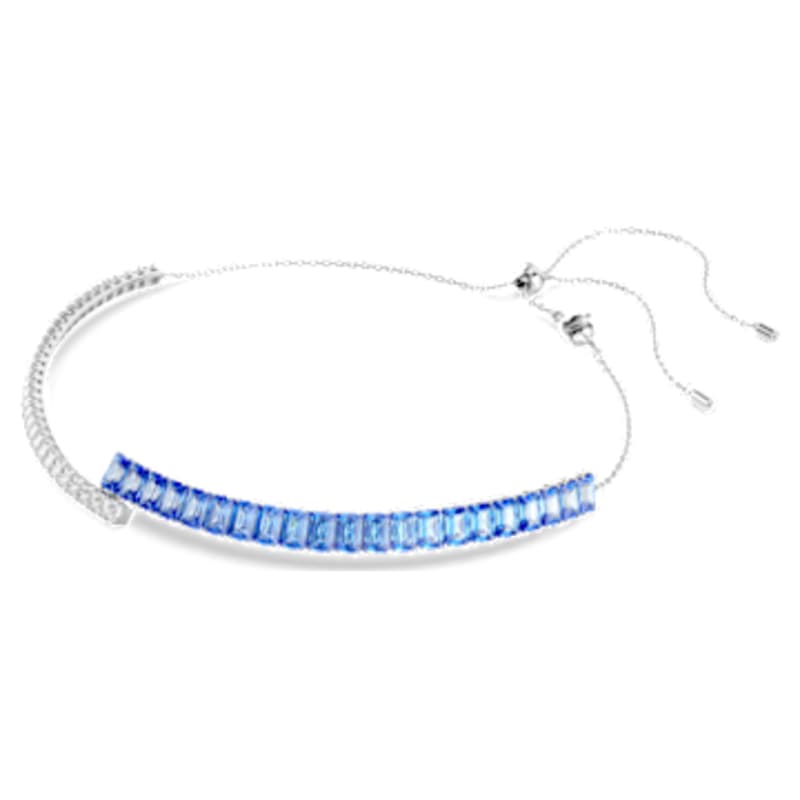 Ce choker Matrix est un choix d’exception pour un style lumineux et coloré. Ce design en métal rhodié présente une bande superposée à l’avant, ornée de Swarovski Zirconia incolores et bleus, de tailles ronde et baguette. Le choker est ponctué à l’arrière d’un fermoir mousqueton et d’un mécanisme coulissant pour un ajustement parfait. Associez ce bijou à un bracelet ou à des boucles d’oreilles assortis pour accentuer l’effet.