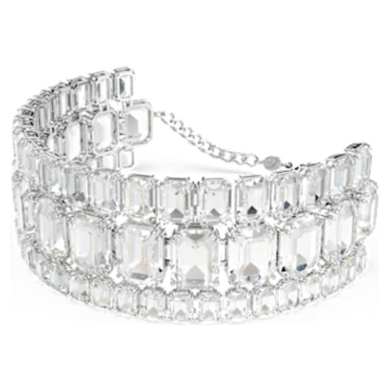 Élevez votre style au quotidien avec ce splendide choker Millenia. Pièce d’exception scintillante, ce design en métal rhodié présente trois rangées éclatantes en cristaux incolores taille octogone aux dimensions variées. Ce design sublime, idéal de jour comme de nuit, est un exemple spectaculaire de la maîtrise de la lumière de Swarovski.