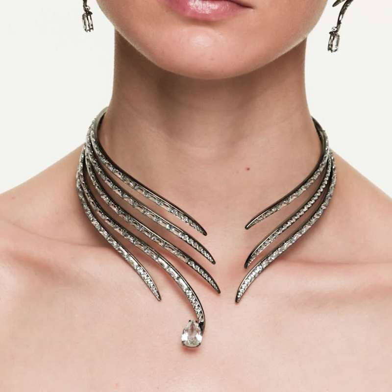 La Collection Vienna célèbre 130 ans de créativité et de savoir-faire chez Swarovski. En hommage à cet héritage, ce choker en placage ruthénium s’inspire des ailes gracieuses du cygne emblématique. Chaque rangée est ornée de cristaux et de Swarovski Zirconia de tailles variées, avec un unique cristal taille poire à son extrémité pour un éclat supplémentaire. Beau bijou d’exception incarnant la sophistication, ce choker est un merveilleux hommage à la maîtrise emblématique de la lumière de Swarovski. Portez-le avec le bracelet-jonc assorti pour maximiser son effet audacieux.